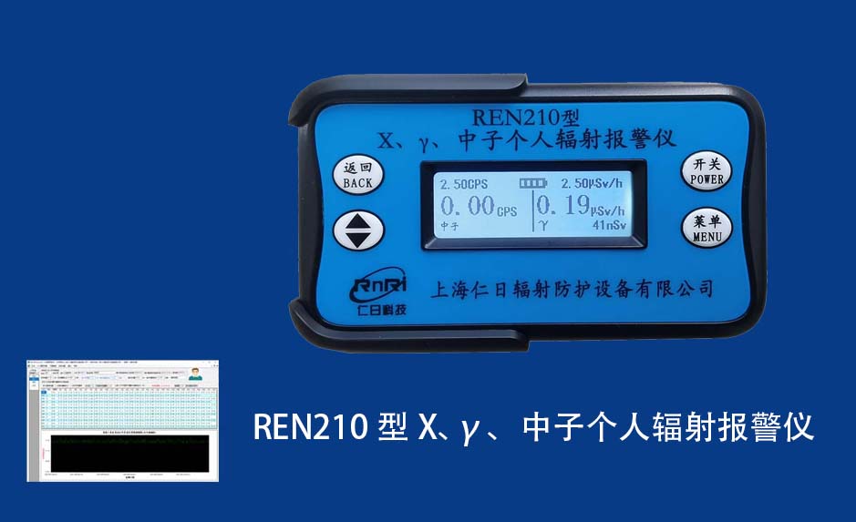 REN210型X、γ、中子個人輻射報警儀內(nèi)置SiPM和鋰玻璃晶體組成中子探測器儀器,采用反照率方式探測中子射線,同時也能探測X、γ射線。因此它可同事監(jiān)檢測X、γ、中子三種射線。能顯示工作場所的劑量當量率和累積劑量,更換電池時,日期及累積數(shù)據(jù)能永久保存。可選配RenRiPersonal個人劑量管理軟件,該軟件可存儲多個人的歷史數(shù)據(jù),能記錄日累積、月累積、年累積、輻照時長、計算平均劑量率、扣除或不扣除本底輻射,且以文字和圖譜的方式展現(xiàn)數(shù)據(jù)。廣泛應(yīng)用于環(huán)保、化工、水泥、煤礦、土木工程、石油、醫(yī)院、疾控、進出口商檢、核電、加速器、機場、中子源庫和其他安檢、邊境控制海關(guān)檢測等